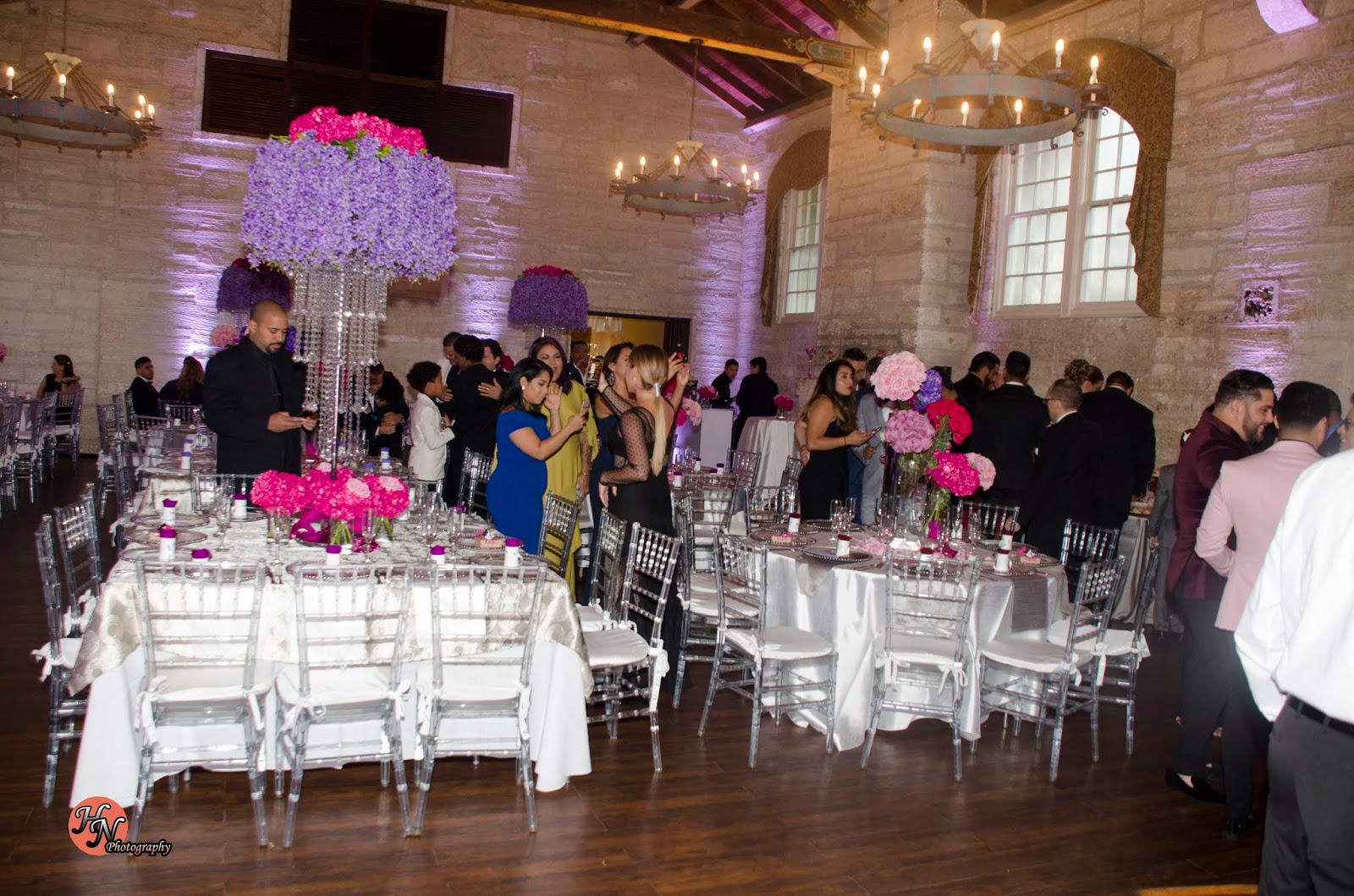 La noche empezó con la llegada de los invitados entre los cuales estaban sus amigos mas cercanos, su familia de los cuales varios viajaron a Miami para esta importante celebración y no podían faltar los amigos de la quinceañera, los cuales la estaban esperando a la salida del salón la llegada de la quinceñera quien llego en un elegante carro acompañada de su mamá y de su tío, quien venia conduciendo el carro.